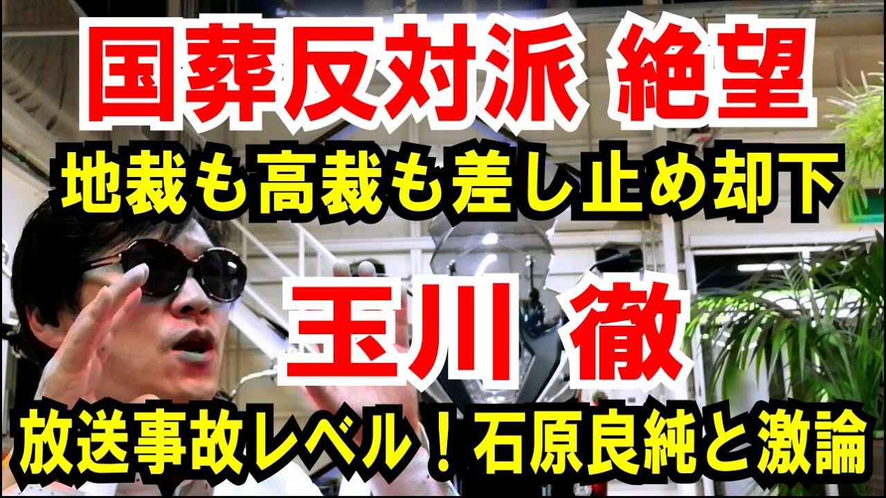 国葬反対派がまた敗れた。国葬差し止めのため、あちこちの地裁で差し止め訴訟をやってんですが、箸にも棒にも掛かりません^^;8/5 羽鳥慎一モーニングショーで玉川徹と石原良純のトークバトルを面白い。Twitterには「放送事故レベル」というワードが飛び出るほど議論白熱!産経新聞https://www.sankei.c...